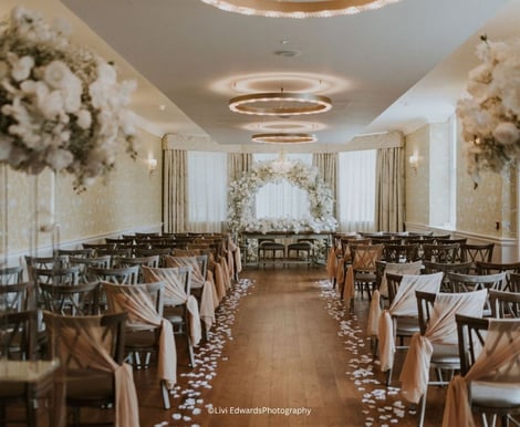 Receptions at Old Palace Chester are effortlessly stylish. Sip signature cocktails or sparkling wines in the intimate Peploe Lounge & Bar, then gather for your wedding breakfast and evening celebration in the resplendent Ballroom, where timeless architecture meets contemporary elegance.
