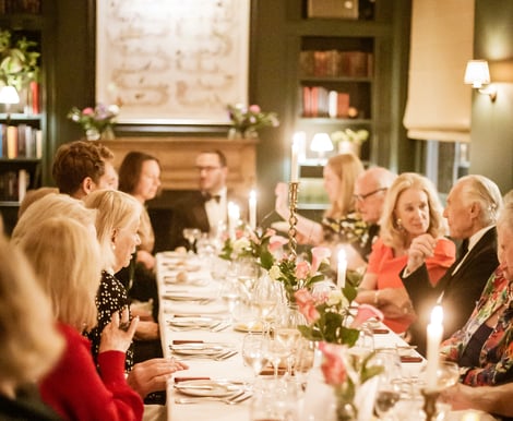 Guests arrive through streets shaped by centuries of London history before stepping into the warmth of the townhouse for drinks, dinner and celebration.