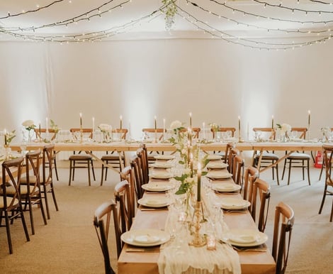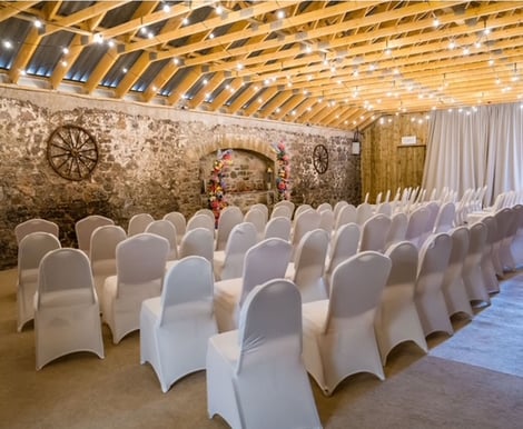 Tables and chairs are included, décor is something you organise together with us. We do have garden furniture, church pews, and barrels which you can hire for an additional fee.