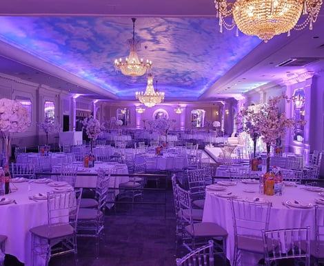 Our sky effect domed ceiling and crystal chandeliers.