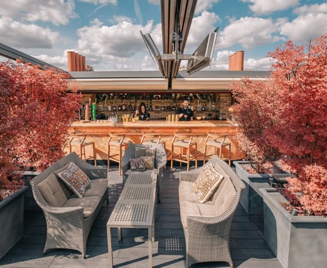 One of the best photo spots at The Chesterfield Mayfair is at Stanley's, our rooftop bar, especially during golden hour. The natural light and leafy backdrop creates a soft, romantic setting that’s perfect for both candid moments and posed portraits.