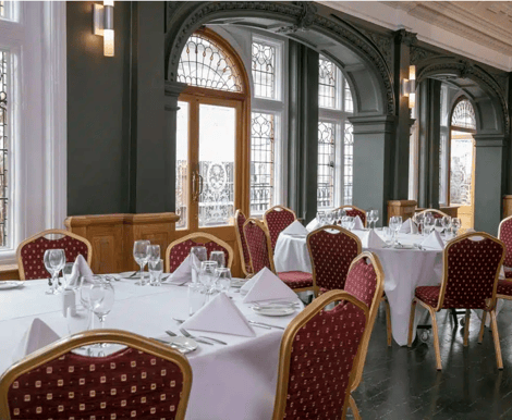 The Sala Room: Ideally suited for more intimate celebrations, The Sala Room showcases the property’s rich Victorian heritage. Featuring ornate high ceilings, intricate stained-glass windows, and a charming working fireplace, the space exudes warmth and sophistication. Accommodating up to 90 guests, it also offers exclusive amenities including a private bar, balcony, and mezzanine level—perfect for a refined and immersive guest experience.