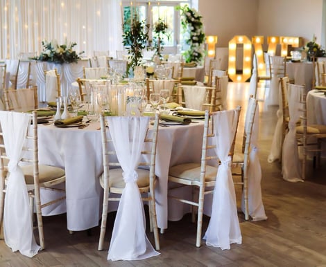 In the evening, tables are moved around the sides of the room to create space for entertainment and dancing, allowing your celebration to continue into the night with a comfortable and spacious dance floor area.