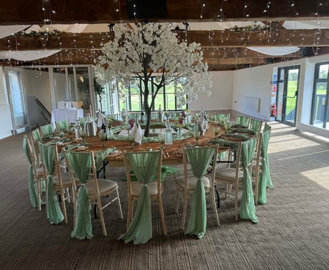 Thornbury's Course view Suite promises a tasteful and elegant venue for your wedding. Situated on the first floor with its own bar and two private balconies, it boasts stunning panoramic views over the golf course. We offer excellent service and superb cuisine, dance floor and amenities exclusive to you and can ensure Thornbury Golf Centre & Lodge will be the perfect venue to host your wedding celebrations. We are committed to supporting you in the planning and organisation of your wedding to ensure your special day is truly perfect. Our commitment includes; -A wedding co-ordinator -Use of our Course view Suite, providing an exclusively private area for your family and friends to celebrate your commitment to each other. -Use of the Lodge grounds for photography -Use of our silver plated cake base and knife -Complimentary white table linen tablecloths and napkins. Our wedding packages are designed to make planning your wedding as simple and affordable as possible. All include room hire for the wedding breakfast and evening party, use of the Lodge grounds for photography, use of white table linen and chair covers and sashes, free parking for your guests, table plan easel, cake base and knife, red carpet, plus discounted accommodation rates for guests. If you are looking for something different to our packages, that is not a problem. We offer complete flexibility to change packages around, or even create one of your own! The Thornbury Lodge offers a fantastic solution for close friends and family accommodation on the night of your wedding, with diverse and comfortable guest rooms. They each have their own unique look, but the overriding theme is one of rest and relaxation. Care has been taken to ensure that the rooms are the perfect place to unwind at the end of a long day or a long golf round! All rooms feature a flat-screen television, tea and coffee-making facilities, complimentary wash products, fresh white bed linen and big fluffy bath towels. Call our office to speak to on of our Wedding Coordinators!