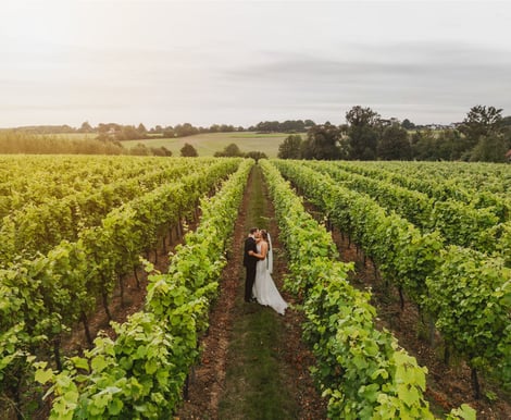 Yes, couples can hold a romantic open air ceremony under the bespoke cedar-wood pavillion, overlooking lush vineyard vines and the open Essex countryside, or on the rose-lined terrace at the rear of Cellar Door, where golden hour meets the open skies and far-reaching barley fields.