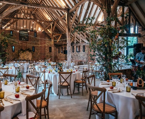 If you’re planning a wedding any time of year, the 400-year-old Cellar Door barn is a standout choice. This beautifully restored threshing barn keeps its original beams, red brickwork, and unique arrow slits, blending history with modern touches like large glass windows and underfloor heating. It’s a versatile space that seats up to 120 guests for a meal and welcomes up to 200 for an evening reception.