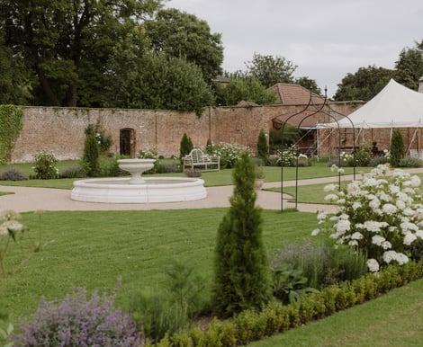Outdoor weddings can be enjoyed under the impressive backdrop of the hall, in the English walled garden, under our canvas stretch tent or on the quintessentially English tennis lawn.